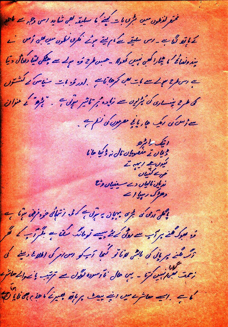 1971ء کا سال انتہائی ذہنی خلفشار کا سال تھا۔ جس کے اختتام پر ہمارا ملک دولخت ہوا۔ اور مزاحمتی ادب نے فریادی ادب کی شکل و صورت احتیار کر لی۔ 1971ء سے 1977ء تک کا عرصہ جمہوریت کی بحالی کا عرصہ قرار دیا جاتا ہے مگر ایسا نہیں کہ اس دور میں اہلِ قلم حضرات حاموش رہے ہوں۔ فرق صرف اتنا ہے کہ اس دور میں تخلیق ہونے والا ادب اس مفہوم میں مزاحمتی ادب نہیں تھا۔ کہ یہ ادب کسی جابر حکمران کے جبر و استبداد کے خلاف لکھا جاتا۔ بلکہ اس دور میں حکومتی سطح پر جو گمراہ کن سازشیں عمل میں آئیں اہل قلم حضرات نے ان سازشوں کے حلاف شکائتی انداز میں اپنے اپنے مقامات پر یقیناً قلم کو جنبش دی۔ شاید اس لئے کہ جن طاقتوں کے خلاف مزاحمتی ادب تخلیق ہوتا رہا تھا۔ وہی طاقتیں دوبارہ جمہوری عمل کے درپے تھیں۔